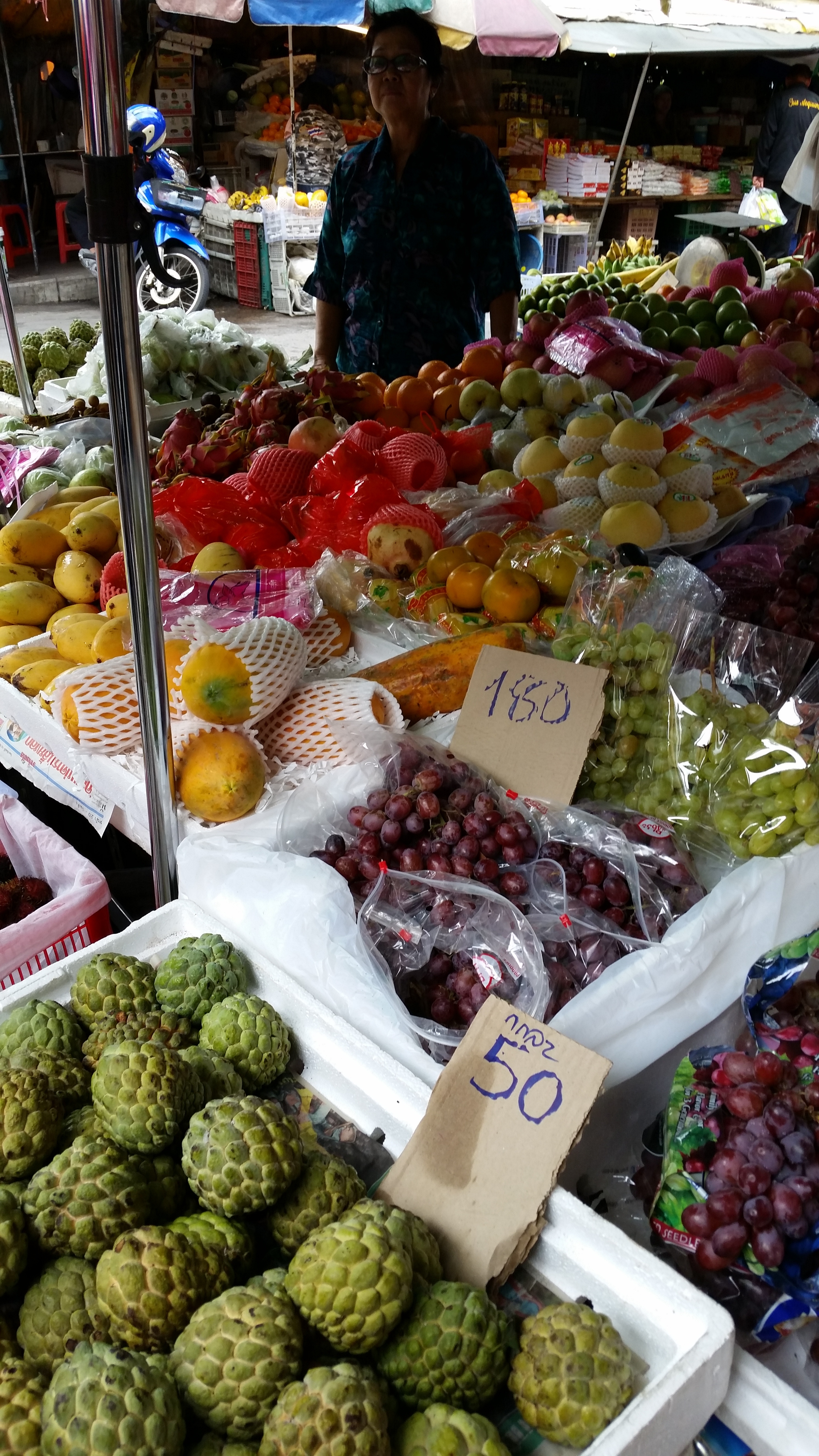 On our way to the next stop, our guide picked up some sweet pork balls as a street snack, and we stopped by a fruit stand to try mangosteen and longan. A quick aside about the fruit: throughout my trip, not just in Thailand, I tried a great number of fruits uncommon in the US – jackfruit, guava, starfruit – though I regret I did not go through the full durian experience (I did have durian ice cream though). The fruits are quite different, meatier perhaps and definitely not as sweet as what we are used to in the US.