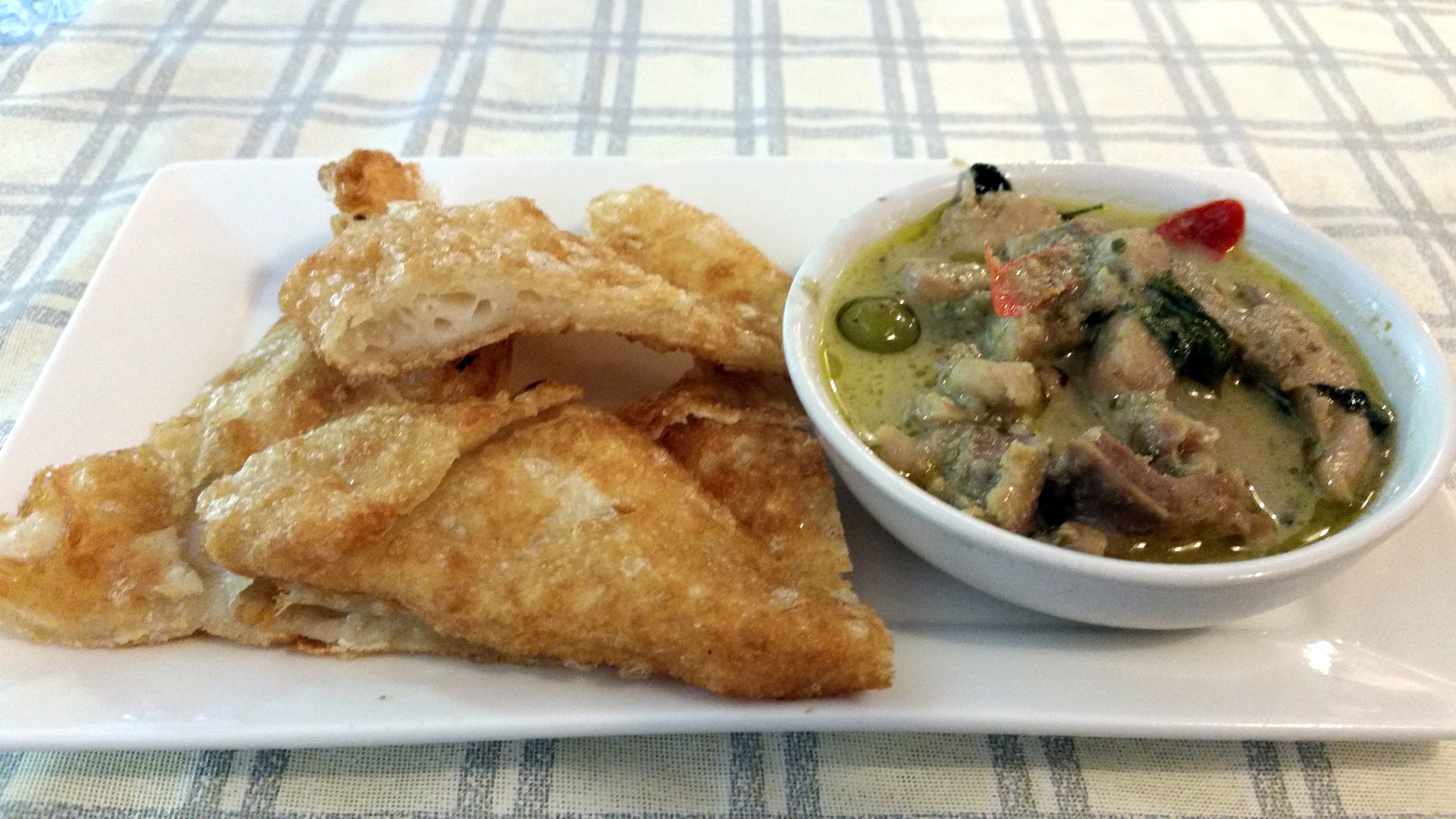 The last stop of the morning tour was a two-story restaurant that thankfully had air-conditioning. Southeast Asia is insufferably hot and humid for those of used to milder climates. Everyone says you eventually get used to it but there is no shortage of sweating. Anyway, at this restaurant, we were offered “roti” with curried chicken. This was different than the roti at US Indian restaurants. It was simply fried dough and so of course it was good but after so many meals difficult to eat. The curried chicken was good but, like the curry noodles above, the quality of the meat was so-so. The meal and the tour ended with tamarind ice.