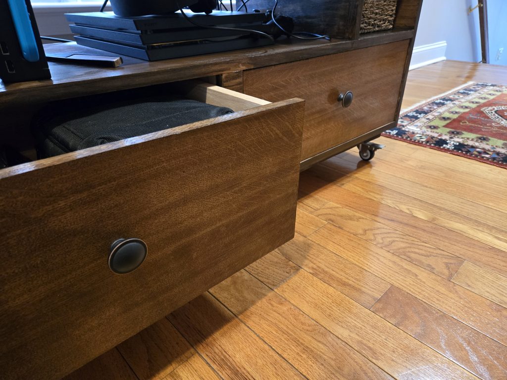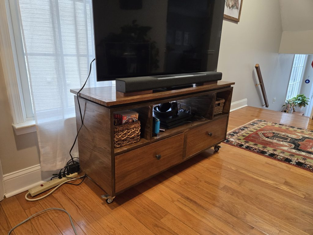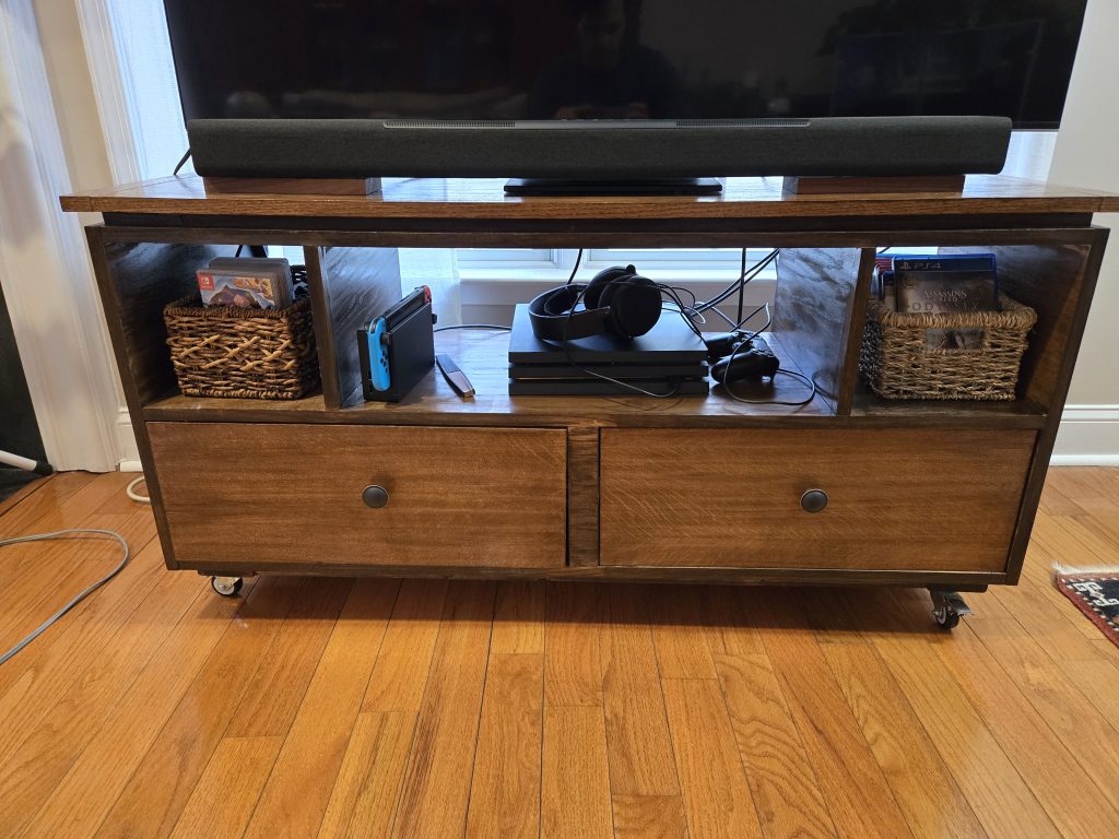 This was my first project of ambition and it was the one I had in mind since the moment I started woodworking. The living room of my new home had no obvious place to put a television so I conceived of this mobile console. It’s not perfect and the execution is that of an obvious amateur. But it fits its role and its space exactly as I had planned. I have a soft spot for this project as it gave me a significant boost in confidence, proving that I had the ability, and the patience, to overcome the challenges of major project – and there were a lot of challenges. It was after this project I knew I could broaden the scope and art of my work.