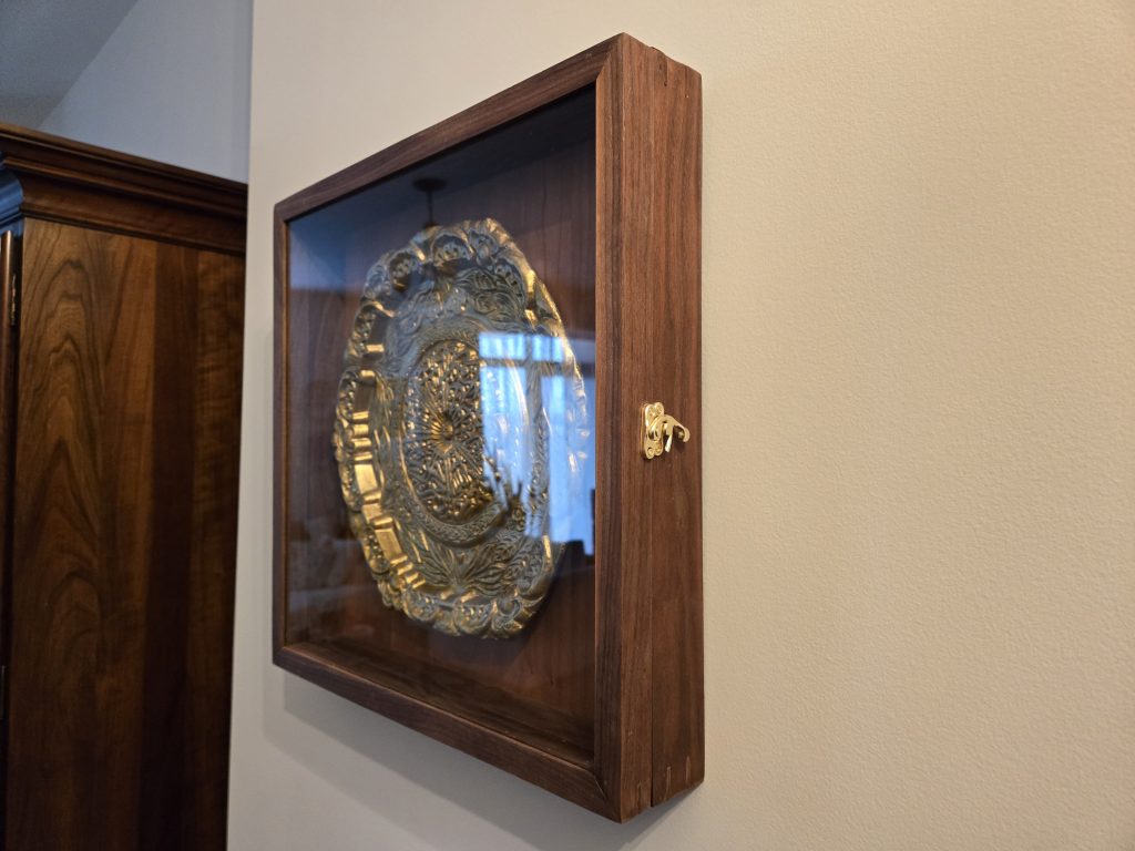 When discussing how to display a plate owned by my grandfather, my mother and I alighted on the idea of a shadow box. This project took far longer than expected but the end result turned out well and now hangs proudly in its place.